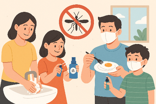 모기의 활동이 왕성한 시기이므로 야외활동 시 피부노출을 최소화하고, 모기장을 사용하거나 모기기피제를 활용해야 한다.